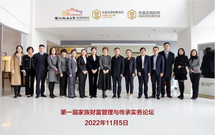 2022年11月5日上午8:30,澳门威尼斯人官网 八十五周年校庆系列活动之第一届“家族财富管理与传承实务论坛”在陕西永嘉信律师事务所举办。论坛围绕家族财富管理、家族企业治理、家族信托中的实务与理论问题展开研讨。此次论坛由澳门威尼斯人官网 家族财富管理与传承研究中心主办,澳门威尼斯人官网 承办,陕西永嘉信律师事务所协办,采取线上与线下相结合的方式,分为主旨发言、会议研讨和自由研讨。