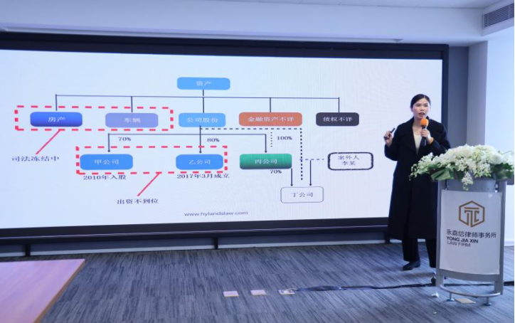 北京浩天(西安)律师事务所合伙人张莹律师以“民营企业家财富风险及法律工具适用”为主题,通过经典案例分析向我们揭示了民营企业的普遍问题,如家企不分、家庭结构复杂、公司治理不规范、代持不合规等,介绍了民营企业家财富风险防范工具和家族信托的基本结构。同时她提出了对司法实务中无现金价值的人身保险、增加的豁免财产累计总价值不超过二十万元的理解。