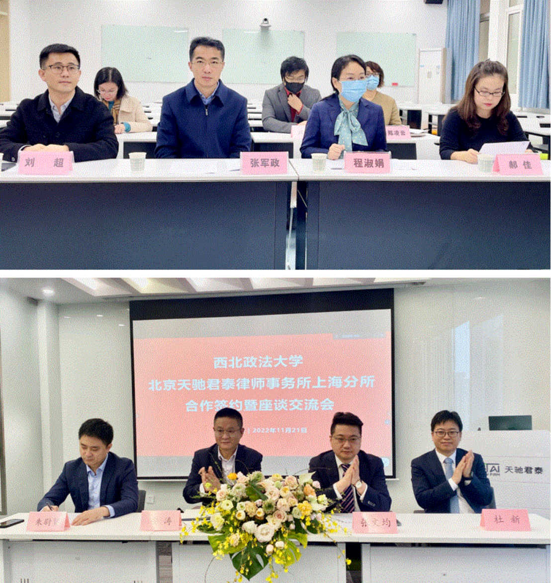 2022年11月21日上午,澳门威尼斯人官网 与北京天驰君泰律师事务所上海分所举行合作签约暨特聘教授、硕士生导师聘任仪式。本次仪式上,北京天驰君泰律师事务所上海分所高级合伙人杜新律师被聘任为特聘教授兼硕士生导师,合伙人朱尉贤律师被聘任为硕士生导师。