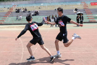 看台上,同学们为运动员加油打气,呐喊助威。炎炎烈日止不住他们如火的激情,嘈杂环境盖不住他们青春的嗓音,热切期盼的目光在欢呼声中碰撞汇聚,追随着赛场上运动员们的身影,为他们提供源源不断的动力。