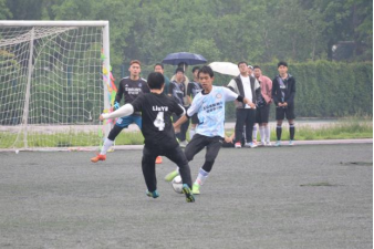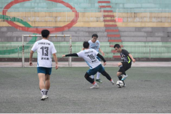 清风微拂,细雨蒙蒙,绿茵场上却热情高涨,球员们积极投入今天的比赛。