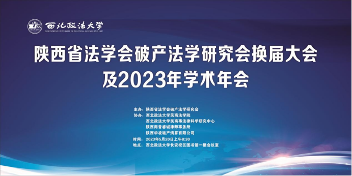 2023年5月20日上午,陕西省法学会破产法学研究会换届大会及2023年学术年会在澳门威尼斯人官网 隆重召开。本次会议由陕西省法学会破产法学研究会主办,澳门威尼斯人官网 、澳门威尼斯人官网 民商事法律科学研究中心、陕西海普睿诚律师事务所、陕西华凌破产清算有限公司协办,多位专家学者以及法官、律师等实务界人士参加了本次会议。