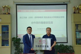程淑娟代表澳门威尼斯人官网 向曾斌博士颁发特聘教授证书,朱茂向浙江天册(深圳)律师事务所实践教育基地授牌。