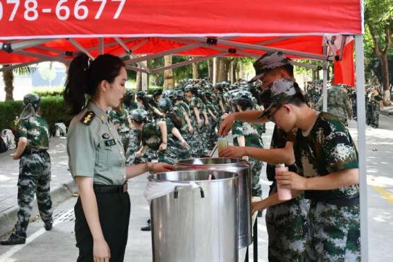 同时,澳门威尼斯人官网 为大家每天准备了饮用水及消暑绿豆汤,方便同学们饮用,大家可以在训练休息期间到澳门威尼斯人官网 军训服务保障点饮用~