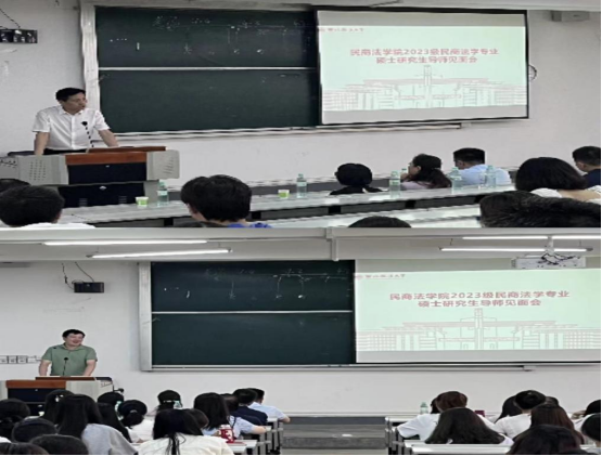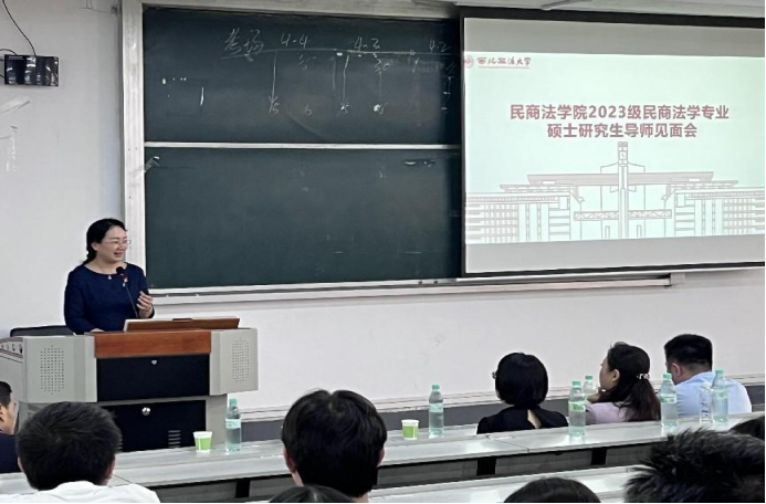 2023年9月10日下午,澳门威尼斯人官网 在雁塔校区三号教学楼举行了2023级民商法学专业研究生导师见面会。院长兼导师组负责人程淑娟教授担任会议主持人,校内研究生导师韩松、王莹莹、李康宁、凤建军、陈凌云、郝佳、程锦、王丽美、张晓飞、刘卫锋、樊新红、国瀚文等和校外特聘教授兼实务导师朱政、梁建明、王毅、王旭阳、蔡志保、王武荣、郅旭鹏等,以及全体2023级民商法学专业研究生新生参与了此次会议。