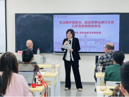 讲座中,李建华教授以《民法典》第148条、第152条与第1143条中关于受欺诈、胁迫的民事法律行为效力后果的规定存在矛盾之处为切入点,认为在体系化视角下,第1143条的规定违背了体系化的要求,从而引出该如何理解第1143条与第148条和第152条之间的关系的问题。在后续的讲述中,李教授围绕“受欺诈、胁迫的民事法律行为效力形态制度”,从“民法典之前的效力规范的非体系化”、“构建制度体系化的论证”、“现行立法构建的分析”三个方面详细展开。