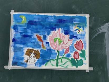 1班和9班以画抒意,伴随着音乐,同学们陆续上台,在画板上各抒心意,呈现了创意十足的画作,充分展现团队协作的智慧的同时为大家疏解了压力。