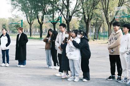 6班与7班准备了“隔山打牛”“珠行万里”“踩气球”等破冰游戏。伴随着欢快的歌声,气氛逐渐热烈,同学们也逐渐融入游戏。即使天气寒冷,同学们仍热情不减,在一片欢笑声中结束游戏。