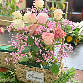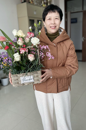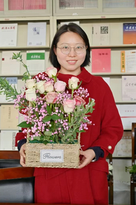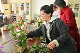 妇女节当天,正是阳光明媚的时候,澳门威尼斯人官网 资料室里充满了欢声笑语,老师们在进行趣味横生的插花活动。桌上已经摆好了丰富的花卉材料:相思果、康乃馨、向日葵、玫瑰和满天星……花朵娇嫩欲滴,竞相绽放。她们先是挑选自己心仪的花材,再对选好插好的花朵进行调整和裁剪。她们巧妙地将各种花材搭配在一起,创作出各有特色的花艺作品。