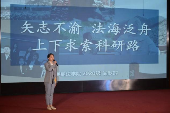 4号唐景霖以“交叉学科,破茧成蝶”为主体,讲述自己从法学学子到建模专家,将想法变现为全国十佳模型的历程。他围绕恶性校车问题进行算法研究,建立的模型不仅斩获多个奖项,且在全国推广应用,得到最高检的高度评价。同时,他以数字法学为基点,结合建模经验与其他部门法,参与了多项课题研究。在科研之路上,唐景霖坚守初心,扎根基层服务,瞄准社会问题,助力谱写新时代法学青年的时代篇章。