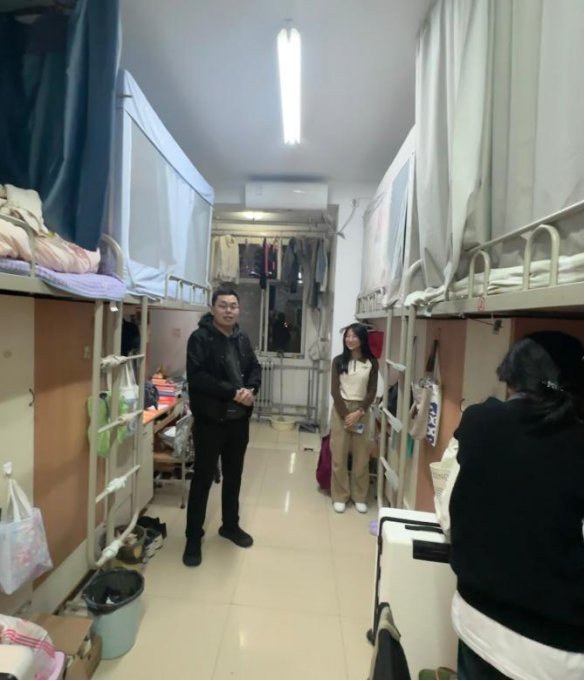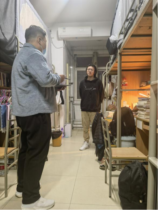 走访过程中,老师们仔细检查了各宿舍卫生,认真排查了宿舍中存在的潜在安全问题,确保同学们能拥有一个安稳舒适的宿舍环境。同时,老师们提醒大家要注意宿舍用电用水安全,遵守宿舍安全守则;保持良好的个人卫生习惯,做到勤通风、勤打扫、勤消毒;外出时及时履行请假手续,注意出行安全;增强集体安全意识,共同营造温馨良好的宿舍氛围。