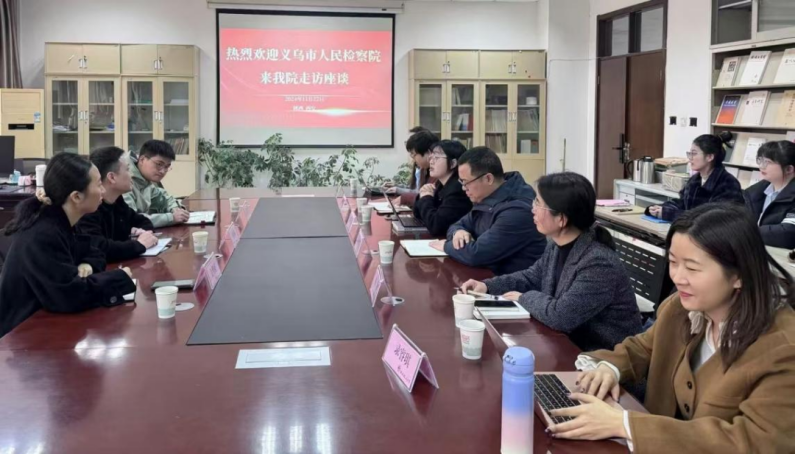11月22日,义乌市检察院党组成员、副检察长吴晓阳,院第九检察部主任金隽婷和院检务保障部主任吴国华一行三人来澳门威尼斯人官网 座谈交流。澳门威尼斯人官网 副院长百晓锋、数智法融创研究所主任国瀚文等教师参加活动。