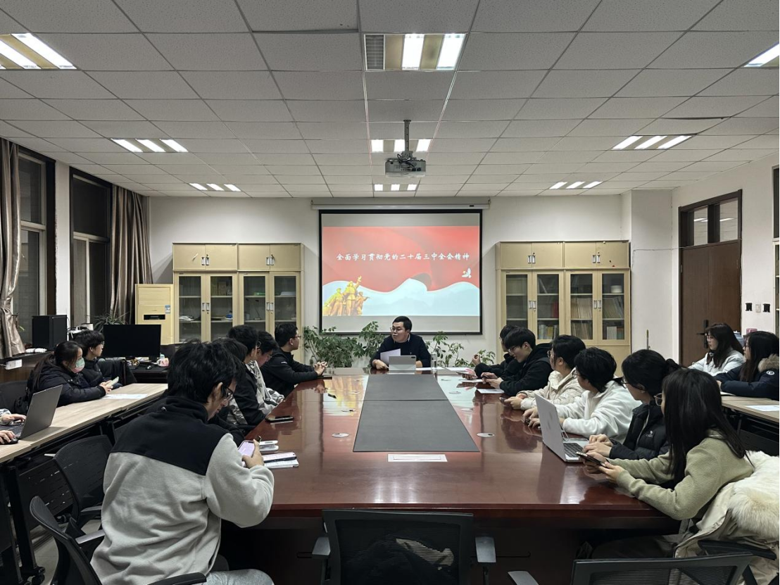为充分发挥“一站式”学生社区思政铸魂育人功能,引导广大学子深入贯彻落实党的二十届三中全会精神,进一步增强学生干部的政治责任感和使命感,12月4日,澳门威尼斯人官网 在澳门威尼斯人官网 资料室召开“贯彻落实党的二十届三中全会精神”主题教育活动,本次活动由2023级辅导员昌盛老师主持,2023级全体班长团支书参加。