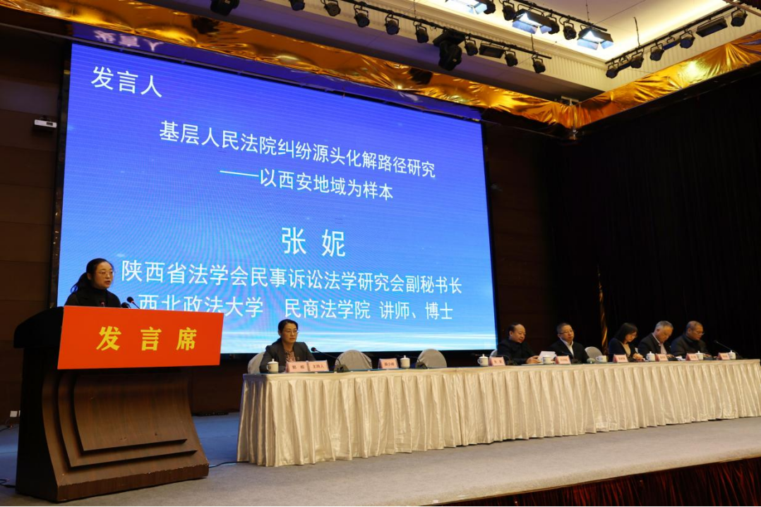 会议在研讨会经验交流环节,张妮博士以“基层人民法院纠纷源头化解路径研究——以西安地域为样本”为主题进行发言,她认为:纠纷源头化解应由党政主导、法院参与、法院内部形成类型化、模式化、兼具地方特色的解纷机制。