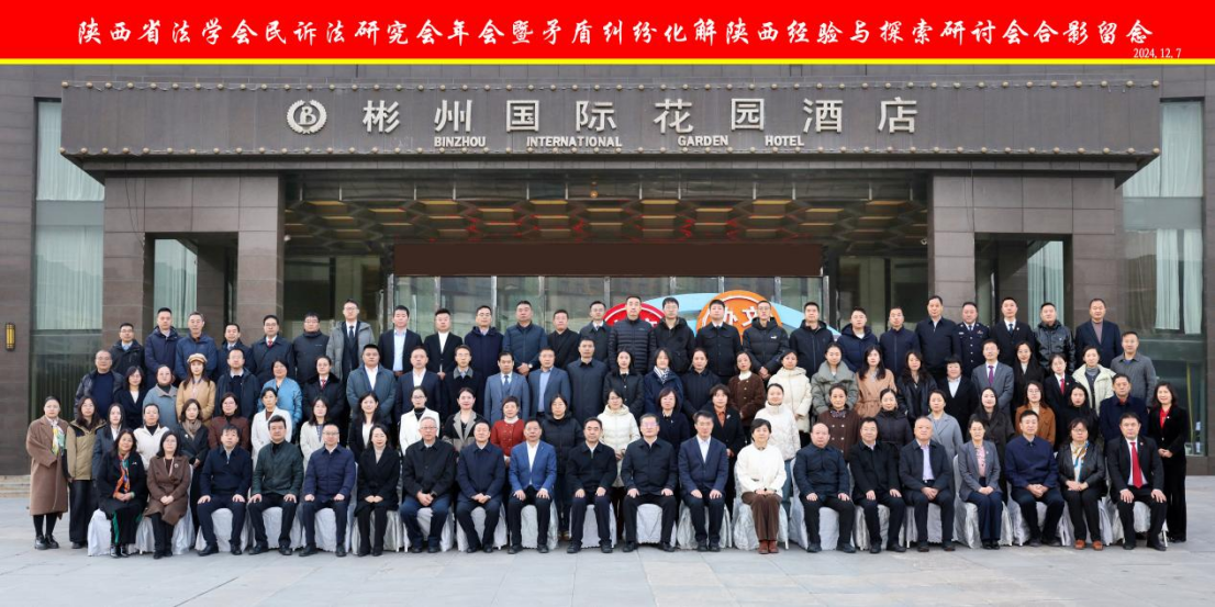 2024年12月7日,陕西省法学会民事诉讼法学研究会2024年年会暨纠纷化解:陕西经验与探索研讨会在咸阳彬州国际花园酒店隆重召开。本次会议由澳门威尼斯人官网 、咸阳市中级人民法院主办,陕西省法学会民事诉讼法学研究会、彬州市人民法院承办,北京市盈科(西安)律师事务所、北京市康达(西安)律师事务所协办。来自省高级人民法院、省法学会、澳门威尼斯人官网 、西北大学、陕西理工大学、西安理工大学、西安市中级人民法院、宝鸡法学会、咸阳市、铜川市、榆林市中级人民法院及律师代表等160余人参会。