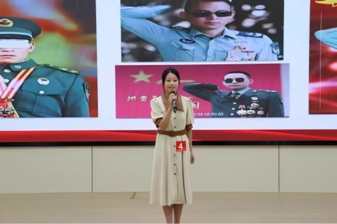 王迪同学演讲的题目是《无手军礼》,她从遵义同乡排雷英雄杜富国的事迹讲起,向我们展示了排雷战士舍己为人、英勇无畏的精神,并将其与长征路上遵义这座“转折之城”的革命精神内涵相结合,生动诠释了遵义青年对国防事业的责任担当与坚定信念。