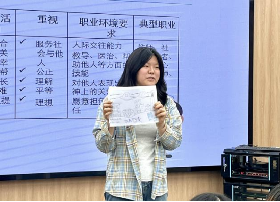 活动全程注重理论与实践结合,运用可视化工具等多元化形式引导学生开展职业探索。在破冰环节,刘洋老师组织学生开展自我效能评估和“生命线”绘制,回顾影响职业发展关键点;在职业兴趣探索环节,通过开展职业兴趣岛投射实验完成人职匹配分析;系统讲解了霍兰德职业兴趣理论,并推荐专业书籍作为延伸学习资料。同学们在轻松愉悦的氛围中感悟到兴趣与职业选择的内在关联,对未来职业发展路径有了更为清晰的认知。