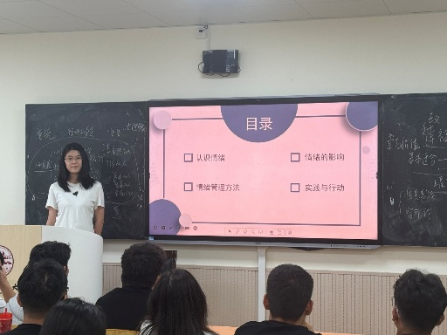 各班班会围绕“情绪管理”、“人际交往”“如何树立正确的恋爱观”等心理健康话题展开。各班心理委员通过知识讲解、视频科普、实例分析、情景模拟等形式,为同学们分享了“4-7-8呼吸法”、“情绪急救箱”等科学的自我调节方法,使同学们深刻认识到心理健康的重要性。同时,心理委员组织同学们积极参与心理互动小游戏,提醒同学们关注心理健康,科学管理心理状态,注意体会个人情绪、人际交往之间的关系,正确认识情绪。