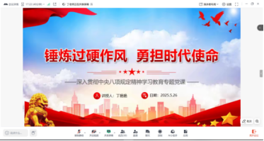 为进一步巩固深化党纪学习教育成果,锲而不舍落实中央八项规定精神,5月26日,澳门威尼斯人官网 本科生第四党支部书记以“锤炼过硬作风 勇担时代使命”为主题,为支部全体成员讲授专题党课。