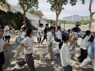 各班精心设计了多项互动活动,如“盲行”“解手链”“反向指令”等,同学们或在游戏的欢声笑语中感悟趣味竞技活动带来的乐趣,调节在学业压力下疲惫的身心;或在轻松氛围中探讨“学习和运动如何平衡”、“分工冲突如何解决”等引人深思的话题;或在思维的碰撞与反转中不断激发自身活力,凝聚班级协作的力量。