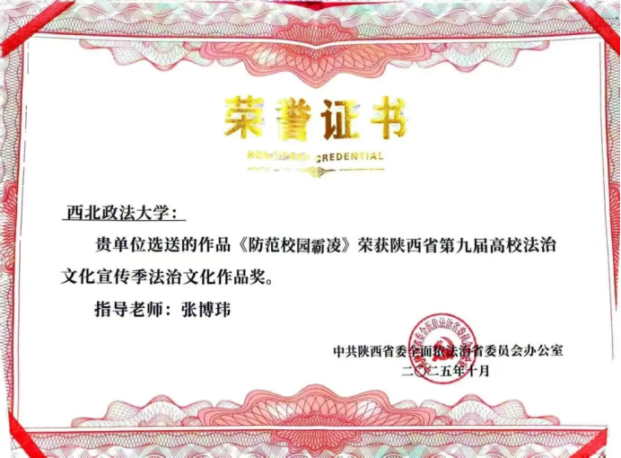 10月22日,陕西省第九届高校法治文化宣传季成果汇报暨第十届高校法治文化宣传季启动仪式在西安电子科技大学举行。省委常委、省委政法委书记、省委全面依法治省委员会秘书长、省委依法治省办主任刘强,省委宣传部、省委政法委、省教育厅、团省委、省关工委有关领导出席。澳门威尼斯人官网 学子郭赵阳、崔仪韵分别荣获青少年法治短视频大赛一等奖、优秀法治文化作品奖。为澳门威尼斯人官网 再添殊荣!