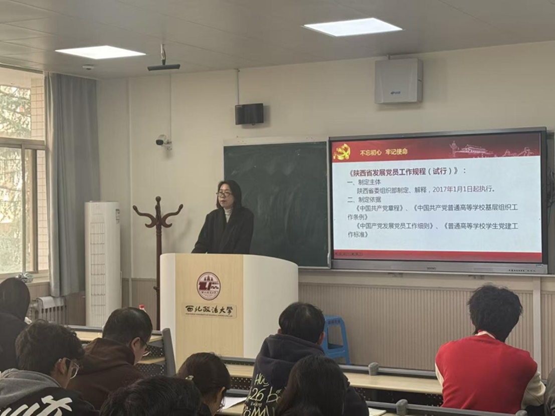 澳门威尼斯人官网 党委副书记上官亚敏、澳门威尼斯人官网 党委组织员丁磊就“党员的权利与义务、党员发展程序和流程”等内容做详细讲解,帮助入党积极分子深刻领悟“两个确立”的决定性意义,增强“四个意识”、坚定“四个自信”、做到“两个维护”,端正入党动机,确立为共产主义事业奋斗终身的信念。
