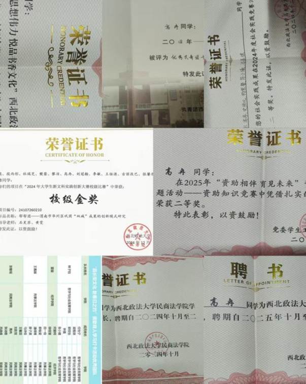 在学业学习中,我以“理论筑基,实践赋能”为导向,始终保持严谨的求学态度,紧跟老师的教学节奏理解知识点,课后积极巩固复盘、梳理重难点,反复打磨专业基础,用扎实的专业知识储备来证明自己的潜力。了解到国家和澳门威尼斯人官网 一等助学金的资助政策后,我结合自身实际情况,希望通过国家和澳门威尼斯人官网 的资助支持来缓解学业和生活压力,让我能够更心无旁骛地投入到学习和实践中。为了顺利申请,我仔细阅读了资助政策,逐一核对申请条件,如实填报各项信息,全程严谨细致地完成了申请流程,最终成功获得了国家一等助学金的支持。这份资助不仅帮助我解决了实际困难,更让我深深地感受到了资助政策的温暖和力量,促使我想要更深入地去了解和学习资助政策。于是,我主动报名参加了“资助相伴 育见未来”资助知识竞赛,备赛期间,我反复研读国家和澳门威尼斯人官网 的资助文件,系统梳理政策要点,通过大量的模拟答题训练,最终凭借扎实的资助知识储备,荣获资助知识竞赛二等奖。此外,我也积极把握各类实践与竞赛机会,2024年间,我与团队并肩作战,参与了大学生新文科实践创新大赛、社会实践等活动,均取得了不错的成绩,提升了我在专业领域的创新与探索能力。假期期间,我参与了两次法院实习和一次信访局实习,通过多次在法院旁听法庭庭审、整理卷宗和在信访局阅读台账、制作接访信访总结报告等工作,我积累了扎实的法律实务经验,提升了问题分析能力和语言表达能力,也深刻体会到了法律在社会治理中的实践价值与基层工作的责任担当。