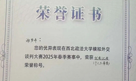 在实践与竞赛中,我保持进取姿态,不断锤炼综合能力。军训期间,我和团队一起参加澳门威尼斯人官网 板报比赛,获得三等奖;每晚参与合唱比赛排练,在军训合唱比赛中荣获一等奖,用辛勤付出换得了丰富的回报;初入大学,我加入澳门威尼斯人官网 青年志愿者大队和法律服务中心,在“爱加倍”活动中陪伴残障青少年,在长安区医院协助导诊,在社区表演普法情景剧,参与模拟法庭……在志愿活动中寻找自我价值,在奉献中体会责任与价值;我参加2024年大学生新文科实践创新大赛,在负责人带领下围绕“民营企业防贪”课题开展调研,查阅资料、撰写报告、制作PPT,最终获得校级银奖;参加2025年大学生创新训练计划,积极与团队配合并获得省级立项;同时,在模拟外交谈判大赛2025年春季赛事中获得个人三等奖,强化了谈判和沟通能力;假期里,我带队参加大学生暑期“三下乡”,在校史发源地延安和西北较偏远地区挖掘校史文化,丰富校史资源库,和团队成员携手推动红色校史可视化;此外,我还积极进行体育锻炼,争取加入运动会开幕式方阵的机会,参与乐跑活动……这些经历无一不培养了我分工协作、高效沟通的能力,让我学会精准定位自我优势,锤炼竞技心态与抗压能力,在解决问题、应急应变中提升综合素养以回应社会和国家的需求。