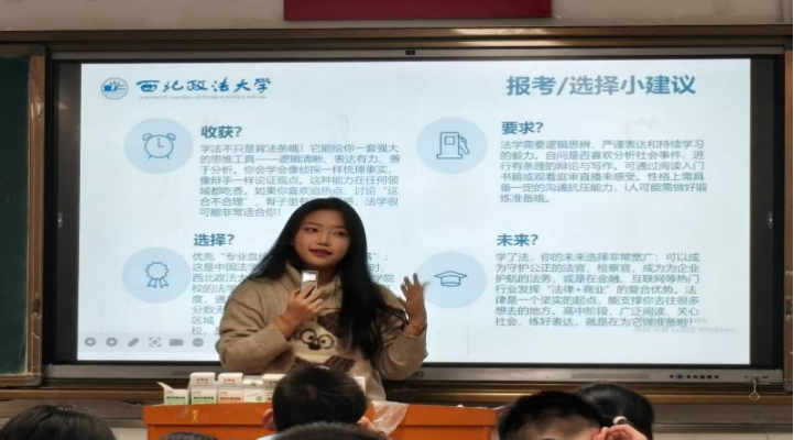 本期宣讲进一步强化澳门威尼斯人官网 专业特色展示。围绕课程体系建设、实践教学安排、科研训练平台等内容进行深入讲解,重点介绍模拟法庭、学科竞赛、社会实践等实践育人环节。通过案例化讲述与图片展示相结合的方式,高中学生更加直观地了解法学学习的内容与节奏。