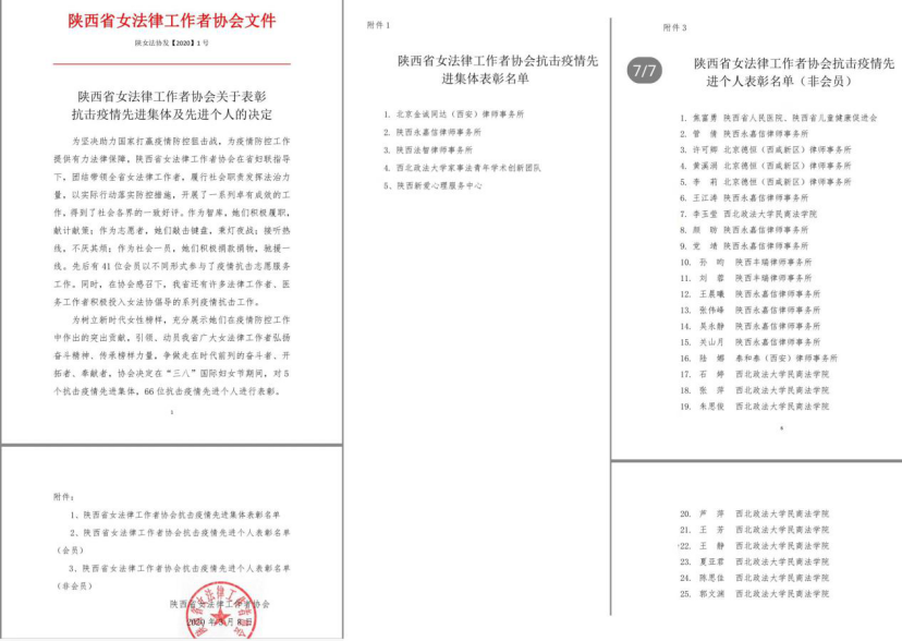 澳门威尼斯人官网 师生的志愿行动得到了广泛肯定。3月8日,陕西省女法律工作者协会作出表彰决定,授予澳门威尼斯人官网 “澳门威尼斯人官网 家事法青年学术创新团队“抗击疫情先进集体”称号;授予澳门威尼斯人官网 教师马钰凤、郝佳,研究生李玉莹、石婷、张萍、朱思俊、卢萍、王芳、王静、夏亚君、陈思佳、郭文渊等10人“抗击疫情先进个人”称号。