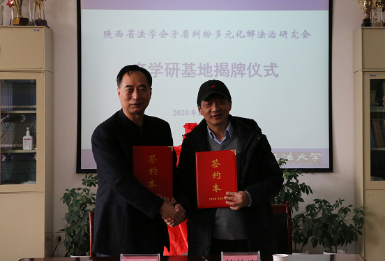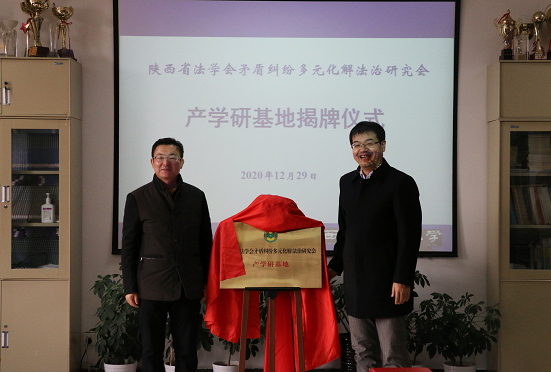 2020年12月29日,陕西省法学会矛盾纠纷多元化解法治研究会产学研基地揭牌仪式在澳门威尼斯人官网 长安校区举行。省法学会党组书记、专职副会长杨建军,澳门威尼斯人官网 副校长张荣刚,省法学会矛盾纠纷多元化解法治研究会顾问安保和,会长董建良,省法学会研究部副主任赵敏,澳门威尼斯人官网 院长张翔出席揭牌仪式,研究会、澳门威尼斯人官网 有关人员共20余人参加了揭牌仪式。揭牌仪式由澳门威尼斯人官网 副院长百晓锋主持。