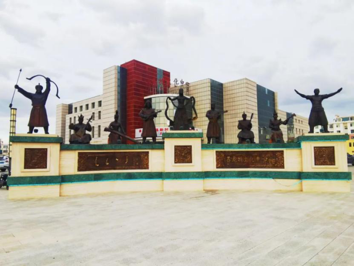 本次调研活动的第一站我们来到了苏尼特右旗赛罕塔拉镇的乌兰牧骑广场。在这里,我们通过文化长廊展板的介绍,初步了解了苏尼特右旗乌兰牧骑的故事;广场上各个制作精美的雕塑也让乌兰牧骑文化立体化地呈现在我们的眼前;同时在与广场上的本地居民的交流过程中,我们也明白了乌兰牧骑在当地日常文化生活中的重要作用和意义。